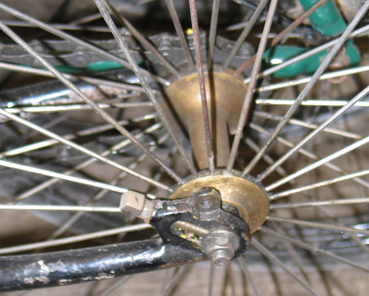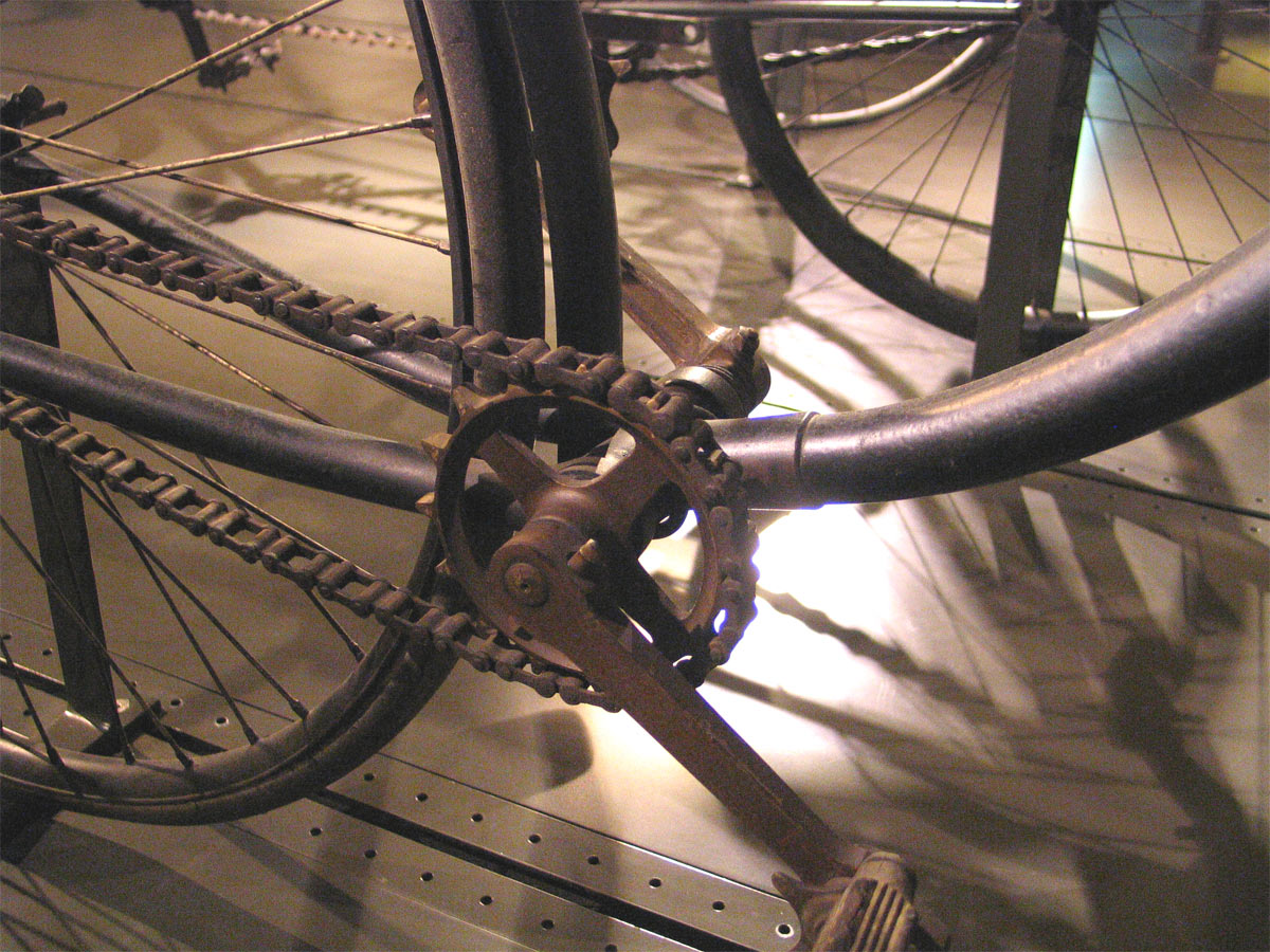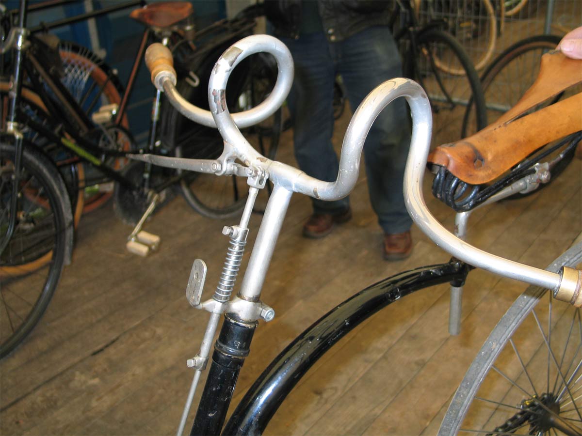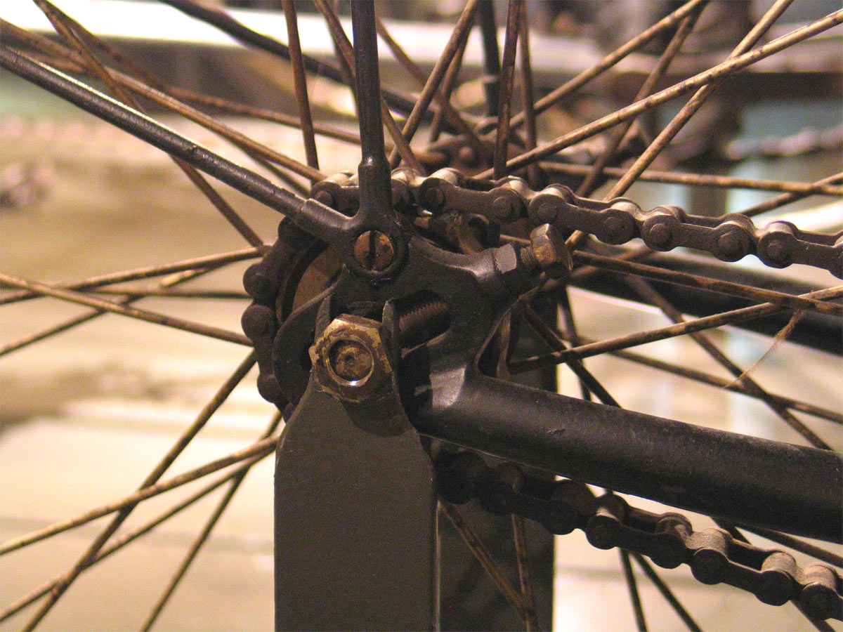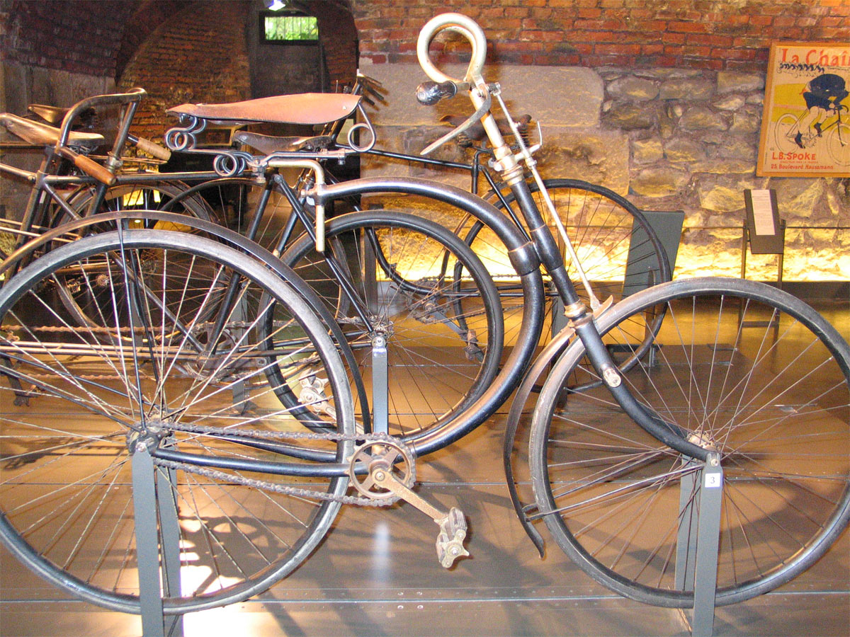 The bike on the pictures is to see in the Musee de l' Art et d' Industrie in St. Etienne and it is certainly not the first model, since it has a ball head and tangent spokes. The bike in the 1889 catalogue still has centres steering and radial spokes.
